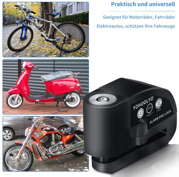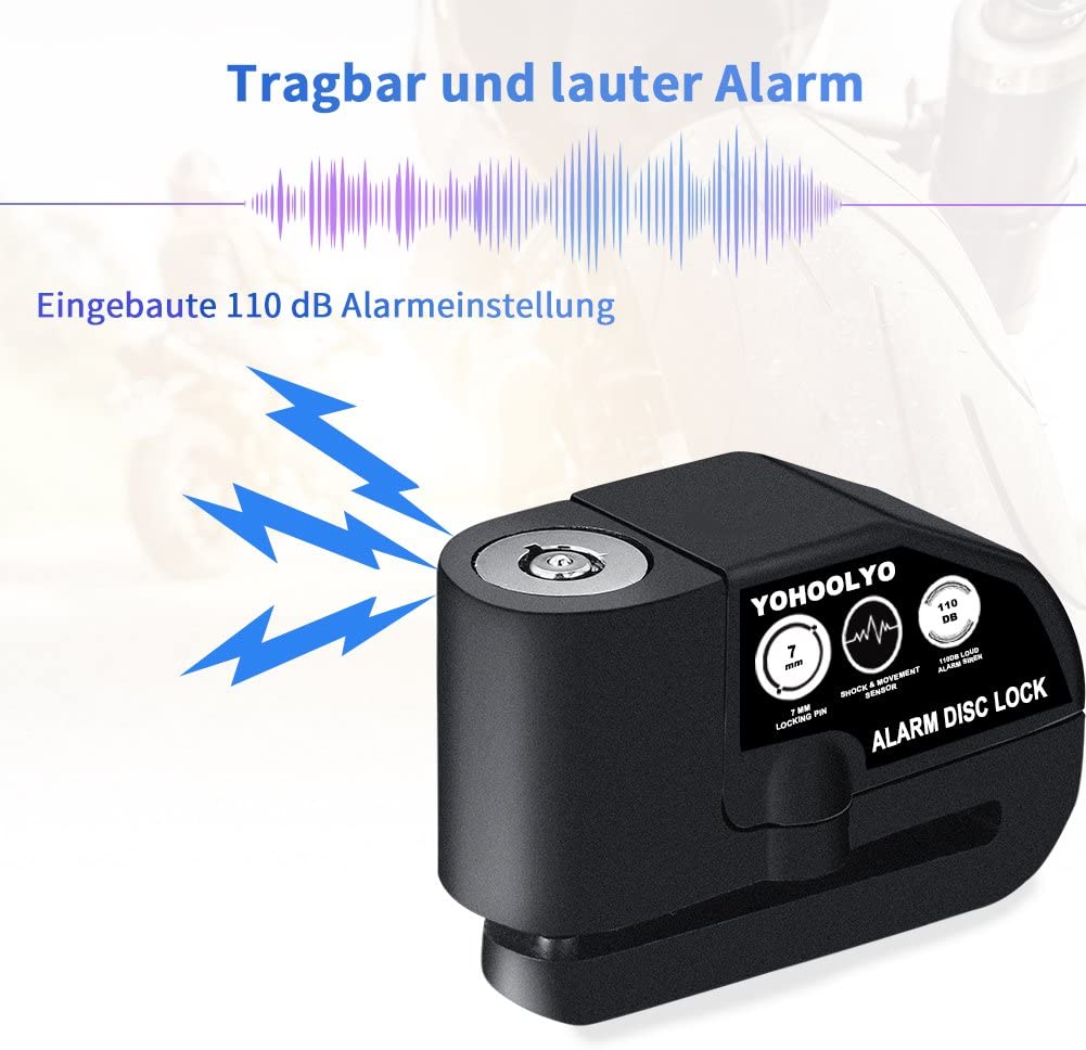 Diebstahlwarnanlage: Motorradschloss verfügt über einen eingebauten Sensor, der Vibrationen und Bewegungen erfassen kann; der Alarmton kann bis zu 110db erreichen